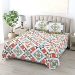 100% Pure Cotton Traditional Printed Bedsheet for Double Bed King Size Bedsheet with 2 Pillow Covers